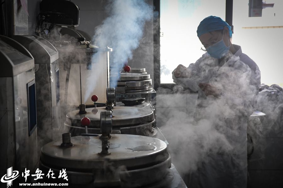 安徽中医药大学第一附属医院副主任中药师韩光磊说,煎药中心一共6个车间,46台煎药机全天不休,每天正常运转能够提供400人份的煎剂,针对“国方”抗疫用药“肺炎1号方”“肺炎2号方”以及“一人一案一方”的煎制,智慧煎药中心优先保障,从收治患者的定点医院出方、配药到熬制、包装全程仅需3小时,确保患者及时用药。