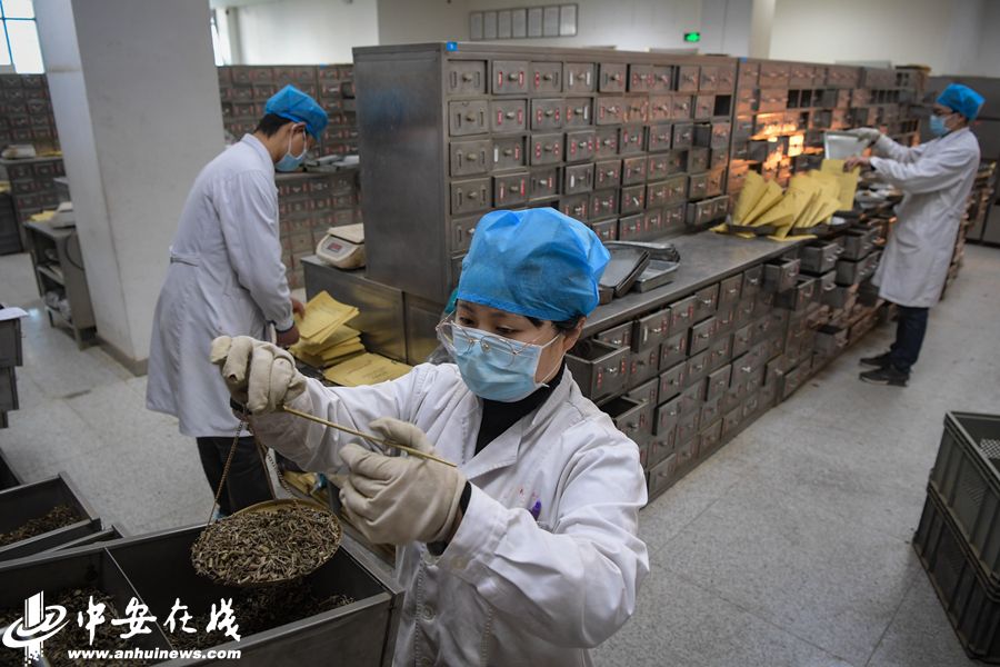 根据定点医院出具的国家指定药方“肺炎1号”、“肺炎2号”,药方医师们进行配药