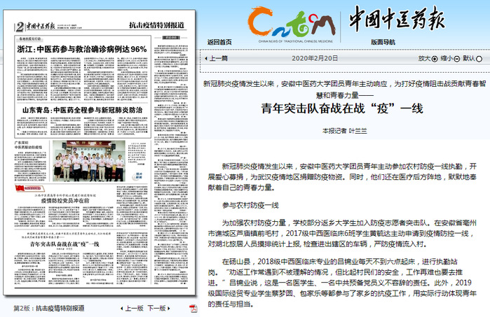新冠肺炎疫情发生以来,安徽中医药大学团员青年主动响应,为打好疫情阻击战贡献