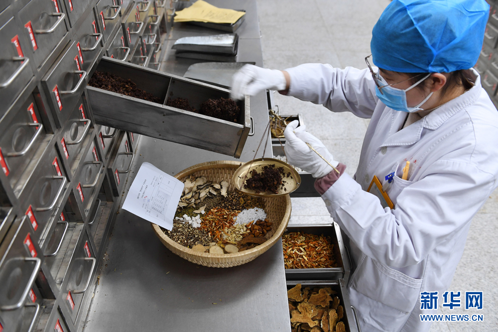 在中西医结合治疗下,患者住院天数、转阴时间平均缩短2天以上。为抗击新冠肺炎疫情,安徽全面动员中医药行业深度参与救治患者取得良好的临床疗效,为提高治愈率、降低病死率、打赢疫情防控阻击战,发挥了重要作用。新华网发(张大岗 摄)