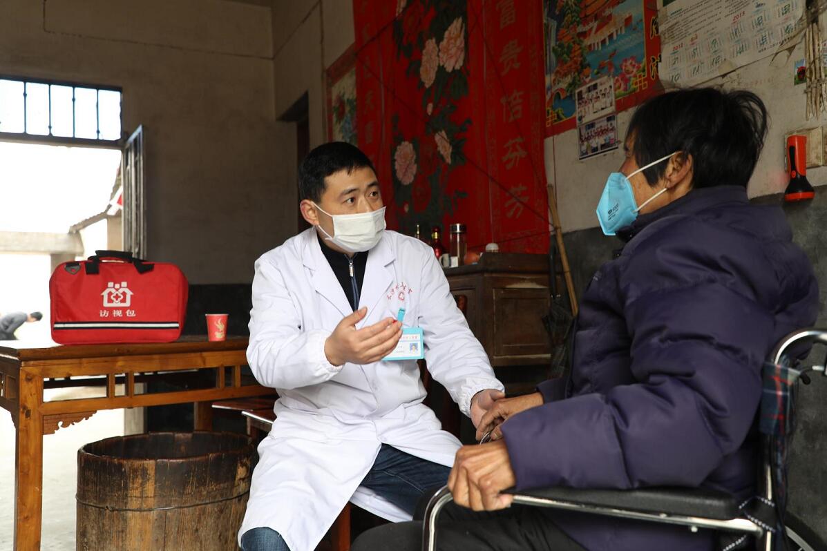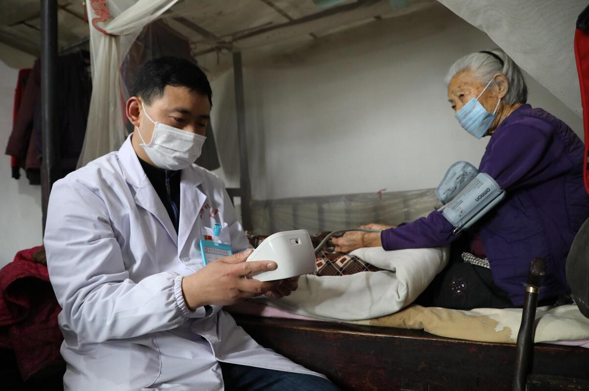 “姚奶奶,我来给您测血糖了。”汤泽俯身为90多岁卧床的姚秀英调整姿势,细心地将奶奶额前的白发捋了捋。姚秀英的儿媳王云兰说,前段时间婆婆因为心衰引起浮肿走不了路也吃不下饭,当时家人已经开了通行证准备去县城看病,但没想到汤医生诊治后,婆婆的浮肿很快消退,精神状态也好转了,家人放心许多,也不需要在疫情防控的关键时刻外出看病。