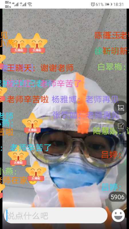 “同学们,打开这个门,我们就进入污染区了,与新冠的斗争也就正式开始了!我们的翁菲菲老师也早已做好了准备,后面的实践教学将由翁菲菲老师带领大家继续进行。”在同学们热情的感谢之后,栢玲将直播交给了翁菲菲。