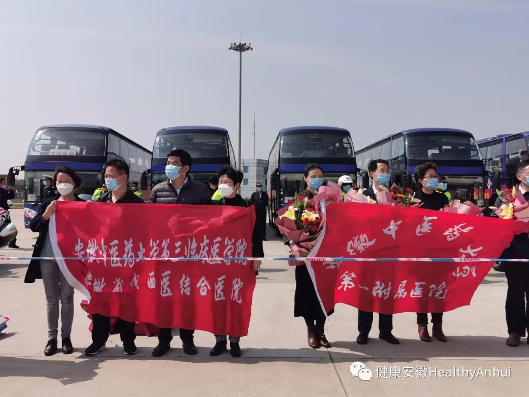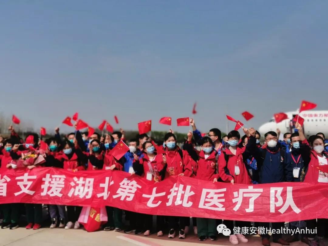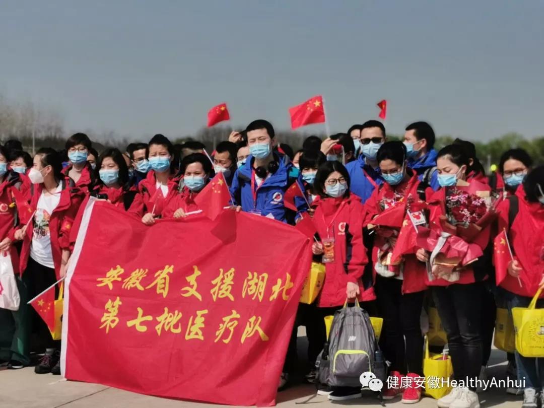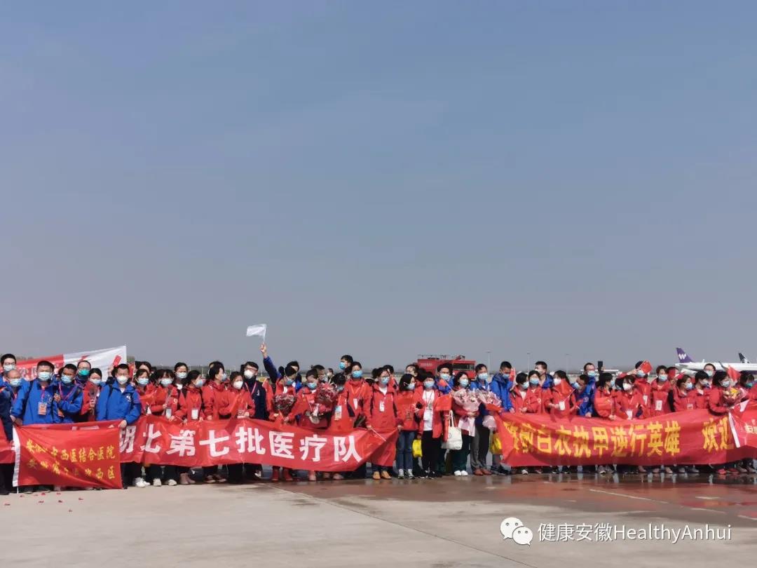 3月24日下午,安徽省第六批、第七批支援湖北医疗队共325人在圆满完成各项医疗救治任务后乘坐包机返回家乡。