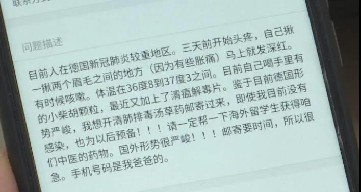 不仅如此,中医师陈炜和互联网医院团队在中医药方的翻译、海外中药房的联系等方面,也事无巨细地帮助患者。悉心的指导,给身处异乡的患者带去的不仅是对抗疫情的信心,还是一份来自祖国的温暖。近期,越来越多的海外同胞通过互联网医院进行新冠肺炎中医药防治咨询。