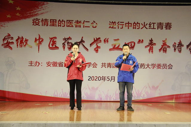 诗会以配乐诗朗诵为主,安徽省朗诵艺术学会会长魏民率先登台,以一首《青春中国》拉开序幕。随后,该校师生、附属医院医护人员依次登场,朗诵专门创作的《中华医药 抗击疫情》《温暖的中医人》等原创诗歌作品。