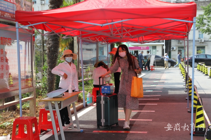 近日,在全面做好第二批学生返校前疫情防控和安全稳定工作的基础上,按照“错峰错时、分批分流”的原则,安徽中医药大学迎来了第二批749名返校学生。