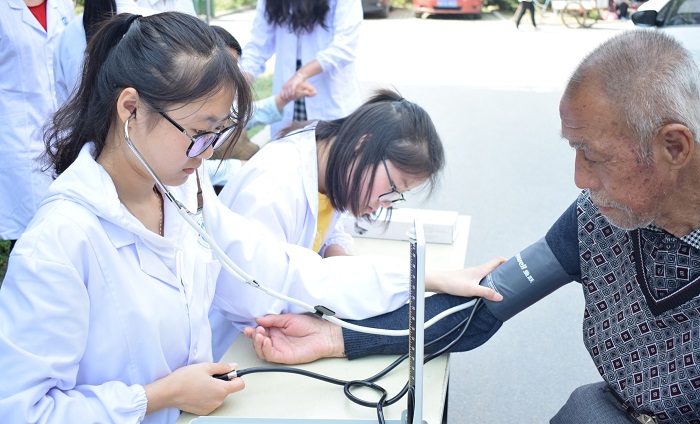 在安徽中医药大学校园附近的少荃家园、文忠苑、光明之家小区和炮兵学院的志愿街里,每周都会有7-20名志愿者穿梭着,他们为社区居民提供义诊服务。