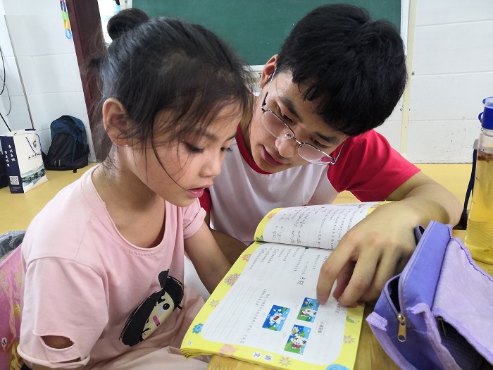 “参加志愿服务活动,在欢声笑语的同时,也会遇到突发状况,我们一直都在不断磨炼着团结协作的意识和攻克难题的能力。”暑假支教的一天下午,志愿者在给孩子们上课,突然下雷阵雨,学校停电,教室很昏暗,窗外又一直电闪雷鸣,很多孩子都被吓得尖叫。志愿者们也是第一次遇到这样的情况,片刻惶恐后及时到孩子们身边安抚小朋友的情绪,带他们回到各自座位上,领他们一起大声唱班歌,驱走大家心中恐惧。“看着孩子们开心的笑脸, 我们志愿者的心里洋溢着满满的幸福……”