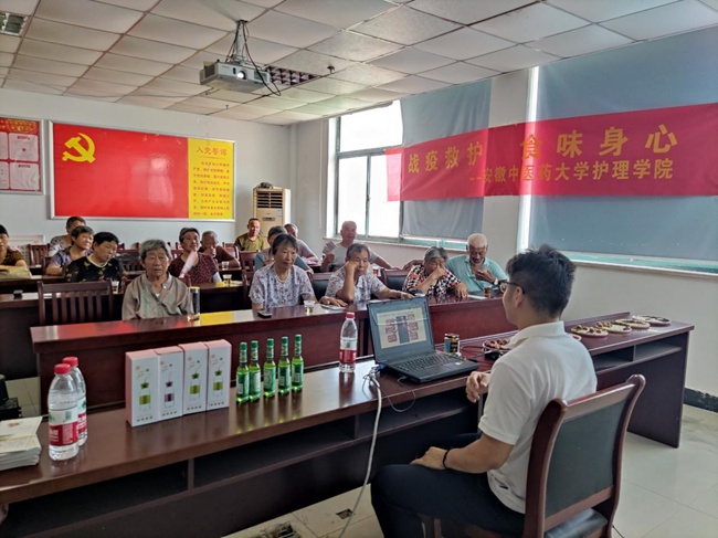 护理学院副教授刘维婷老师、讲师王杰老师分别为社区居民带来青少年心理健康宣讲、“中医食疗进万家”养生知识宣讲,同时与居民积极互动,现场气氛十分活跃;另一边,“急救护理进社区”也在如火如荼地进行。通过知识宣讲、现场教学等方式,大力宣传健康科普知识,倡导健康、文明、进步的生活方式,提高居民的健康意识,引导百姓树立健康观念、培养健康行为、提高健康素养。此次活动不但给居民送去了健康,还温暖了人心。居民表示,安徽中医药大学带来的知识非常实用,对师生一行表示感谢。