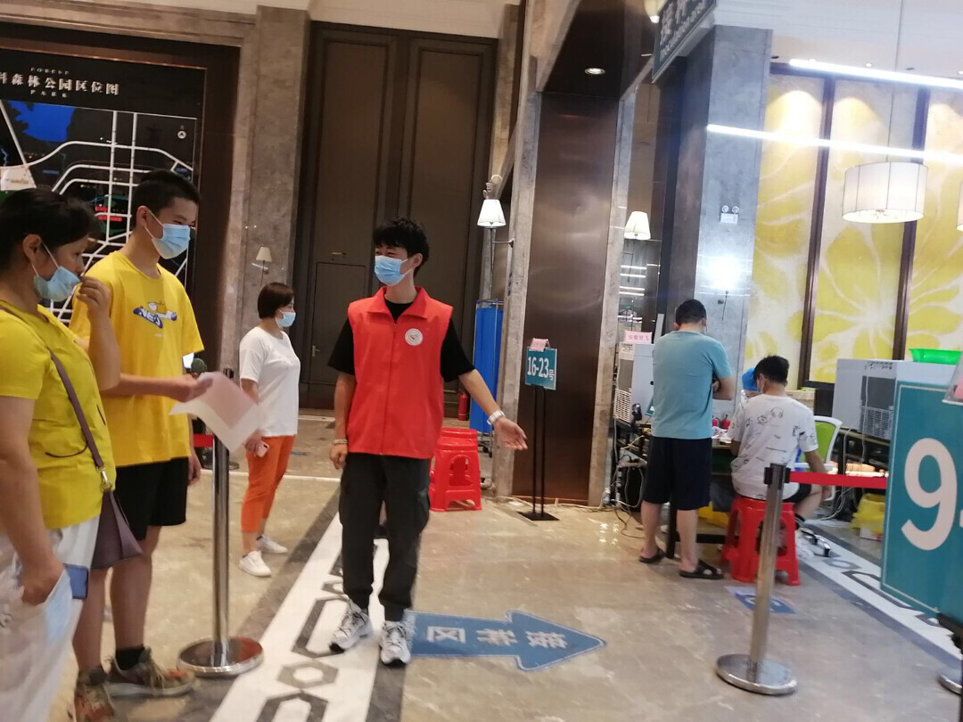 图为志愿者在小区门口做疫苗接种筛查。中国青年网通讯员 刘涛 供图