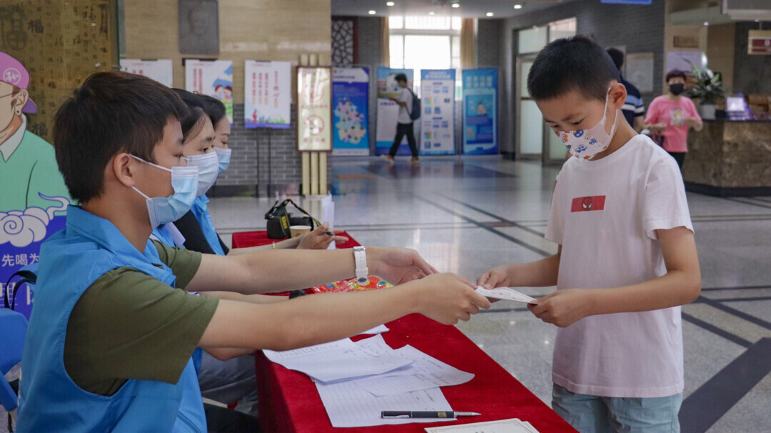 图为志愿者给捐赠书籍的儿童颁发捐赠证书。中国青年网通讯员 刘涛 供图