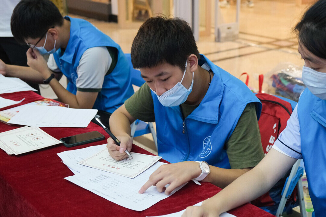 图为志愿者在认真核对捐赠者信息。中国青年网通讯员 刘涛 供图