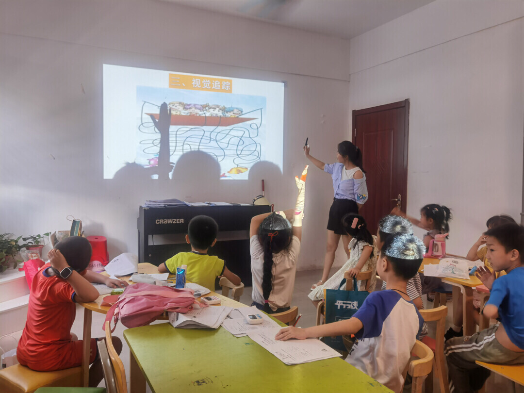 图为志愿者给儿童们上注意力集中小课堂。中国青年网通讯员 刘涛 供图