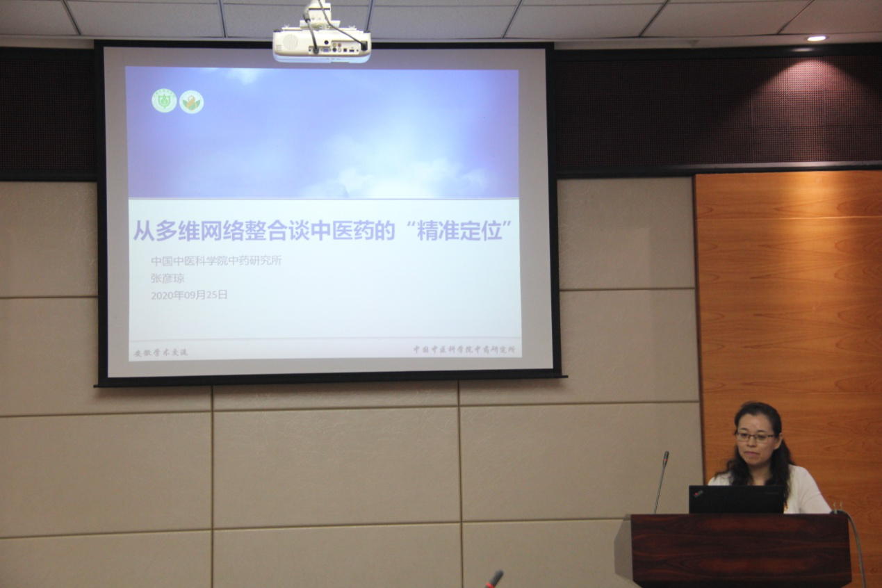 9月25日上午,中国中医科学院中药研究所张彦琼博士应邀来我校做“从多维网络整合谈中医的‘精准定位’”学术交流。此次会议由安徽中医药大学科技处、药学院、中药药效与安全评价研究所、中药研究与开发安徽省重点实验室、中药复方安徽省重点实验室联合举办。中药药效与安全评价研究所所长汪宁主持会议,戴敏校长、药学院韩岚院长、中药药理系老师、药学院以及其他学院教师、研究生50余人参加了会议。