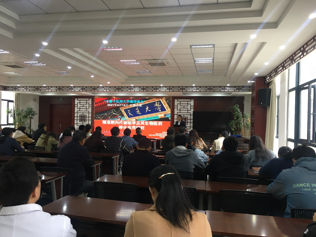 4月14日下午,上海交通大学吕海涛研究员应邀来我校作题为《精准靶向代谢组学及其生物医药转化应用研究》的学术报告。此次学术报告由安徽中医药大学科技处、药学院、安徽省中医药研究院药物化学研究所联合举办。学术报告由药学院副院长尹登科教授主持,我校70余名师生到场聆听。
