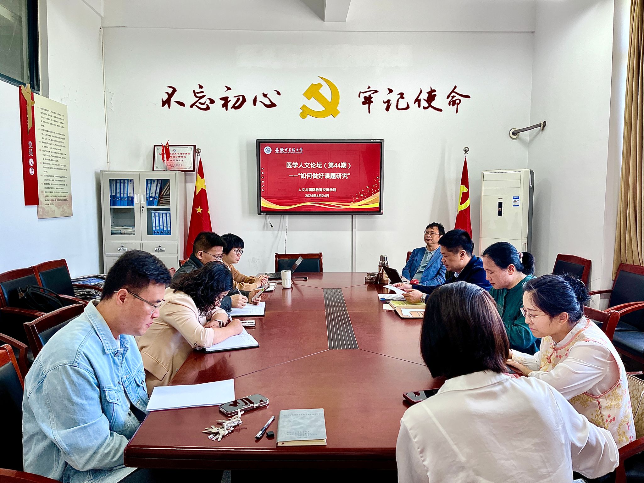 4月24日上午,人文与国际教育交流学院在学院471室开展了医学人文论坛第44期学术沙龙。本次沙龙主题为“如何做好课题研究”。由副院长张筱荣主持,邀请了张航和卜菲菲两位老师作为主讲嘉宾,与学院老师共同分享课题研究的经验与心得。