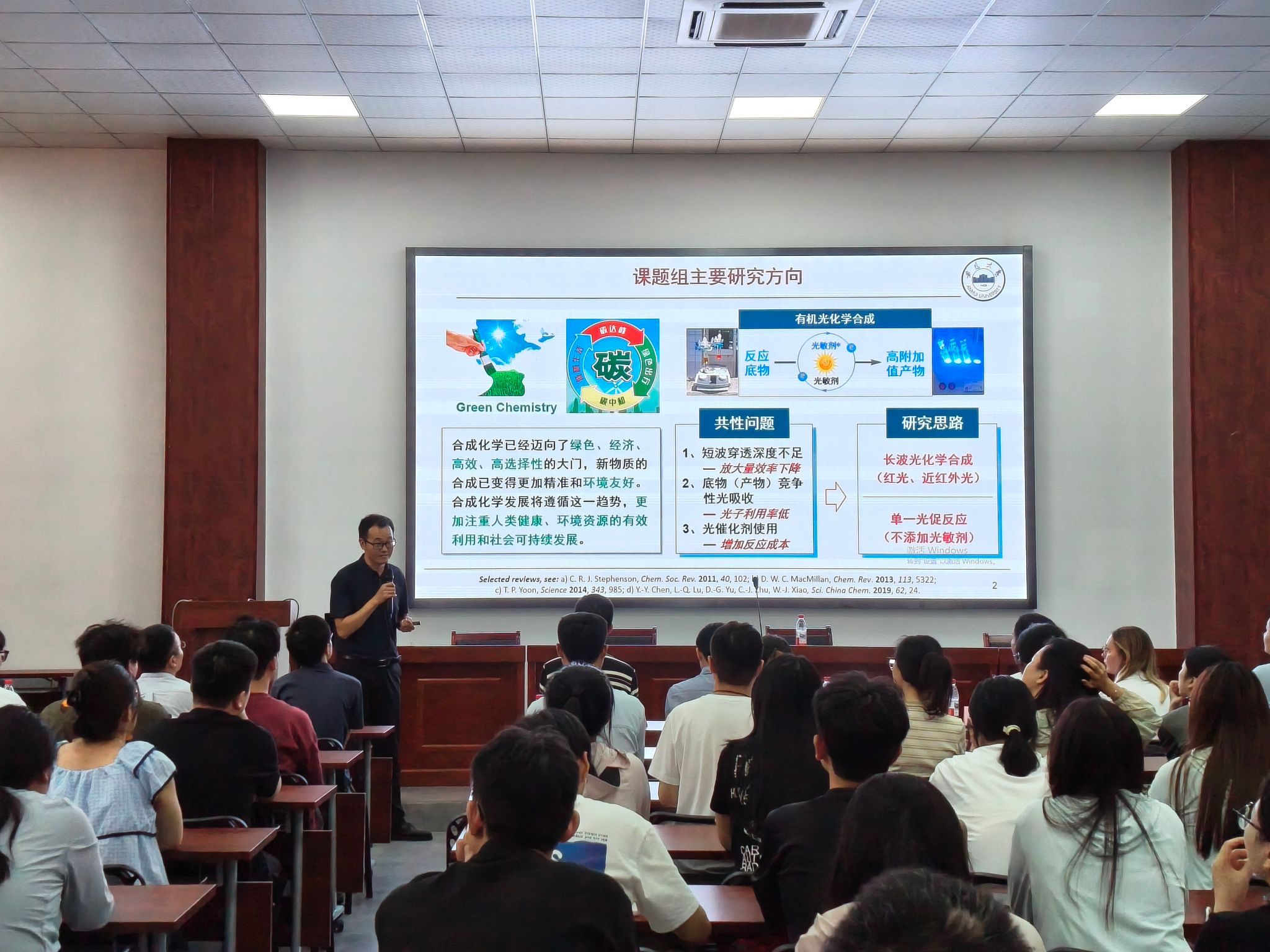 9月3日,由新安医学教育部重点实验室主办、中医学院与药物化学研究所协办的光化学前沿学术报告会在中医学院宅仁堂成功举办。本次会议聚焦光化学在药物合成与材料科学中的前沿应用,吸引了众多师生参与交流。本次会议特邀两位海内外知名学者,德国亚琛工业大学René M. Koenigs教授和安徽大学化学化工学院院长宣俊教授作学术报告,实验室常务副主任童佳兵出席会议。会议由新安医学教育部重点实验室专职副主任吴欢主持。