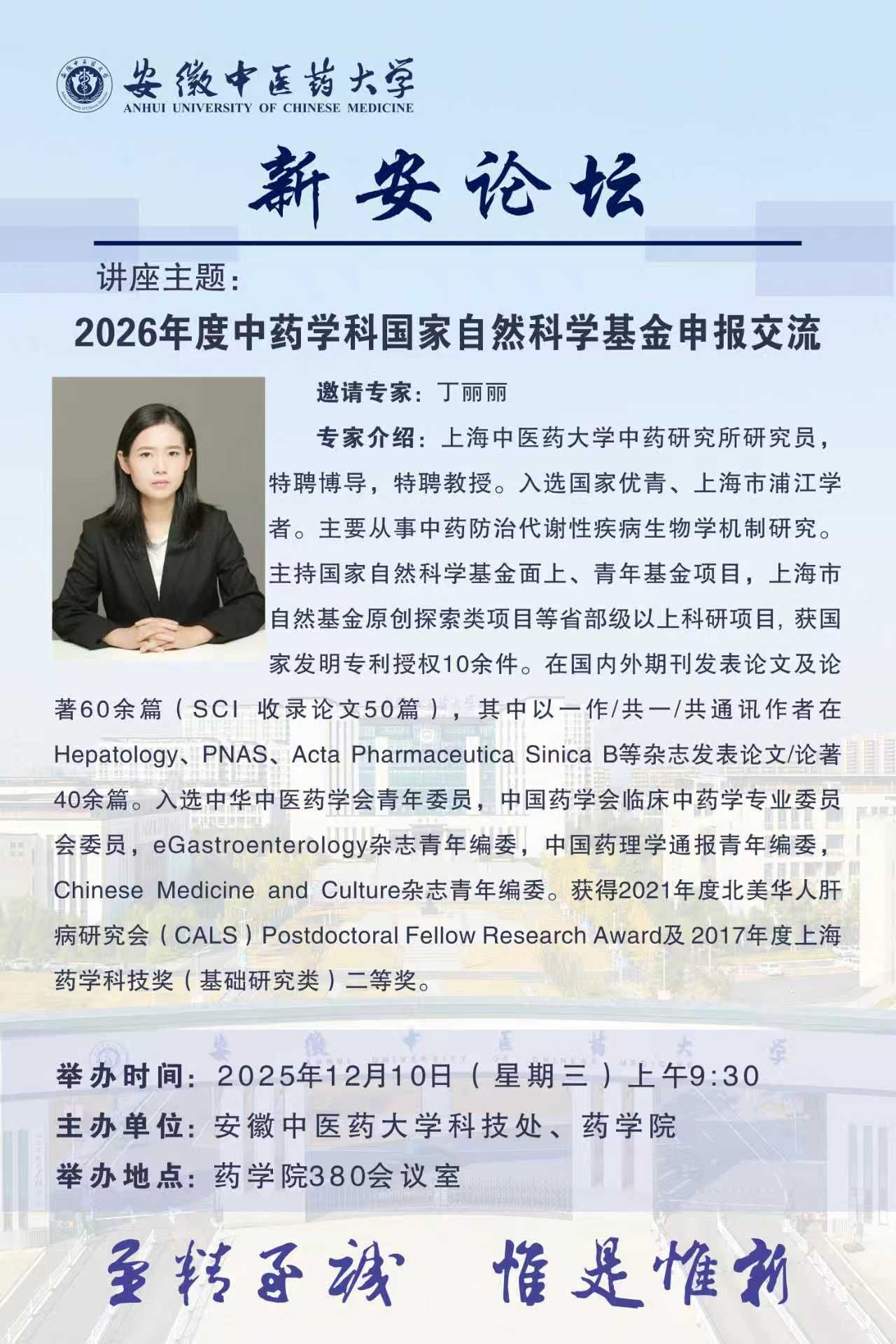 上一条:【学术讲座】如何脱颖而出 -浅谈中医药领域国家自然科学基金项目申报撰写策略