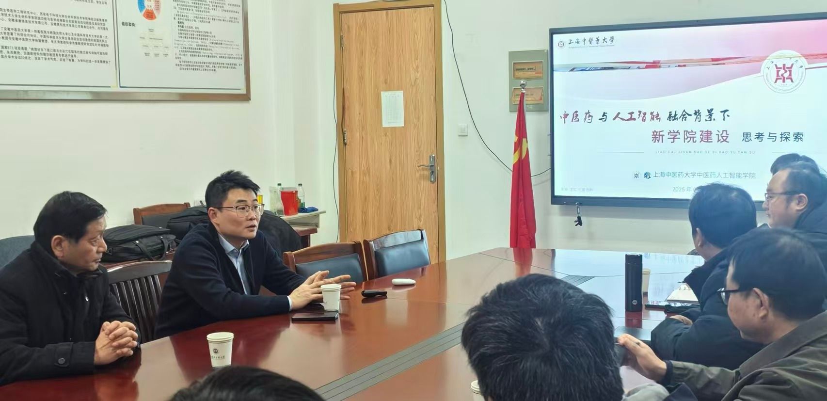 1月14日下午,上海中医药大学人工智能学院名誉院长杨华元教授、副院长、副书记徐刚副教授应邀到医药信息工程学院开展学科、科研工作专题交流研讨,会议由医药信息工程学院党委副书记、院长阚红星主持,学院系主任、新进博士、科研工作人员等参与学习交流。
