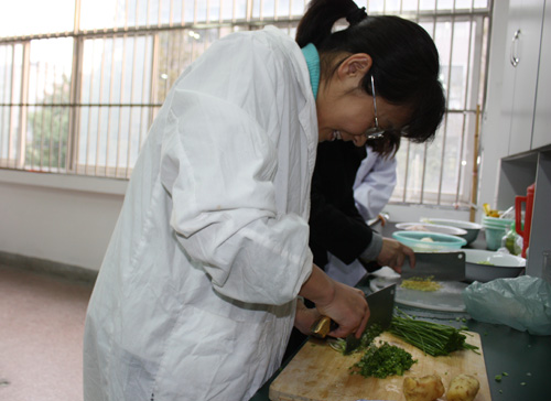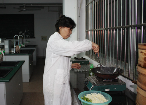 为选派代表参加学校工会举办的第三届厨艺技能大赛,11月4日下午,药学院工会组织报名的各位老师进行赛前演练和选拔,演练内容分别为10分钟包包子、土豆炒肉丝。共有10多位老师参加了本次活动。