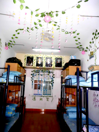 寝室设计中充分展现了该院同学构思新颖、设计独特,用于宿舍布局的手工制品、剪贴画、精美饰品等都体现了该院学生丰富多彩的大学生活。