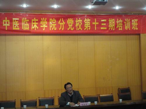 12月4日下午,中医临床学院分党校第十三期培训班在东区图书馆报告厅举行开班典礼。校特邀组织员黄笃法,纪委书记、党校校长刘新跃,组织部部长王道和、副部长胡卿、韩加生,中医临床学院党总支书记吴毅彪、院长周美启、党总支副书记况执本、副院长董昌武及全体辅导员出席了典礼。
