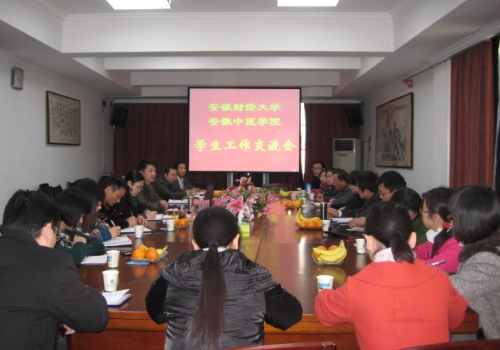 12月2日下午,安徽财贸学院党委副书记胡善珍率该院学生处、各院系部书记一行13人来校,12月9日,安徽财经大学学生工作部部长顾思伟率该校学生处、辅导员一行14人来校,我校学生工作部、有关学院分管书记及辅导员与两所高校的学生工作队伍就大学生思想政治教育、辅导员队伍建设、学生管理、主题班会教育等方面进行了广泛交流。