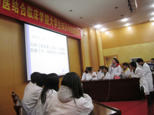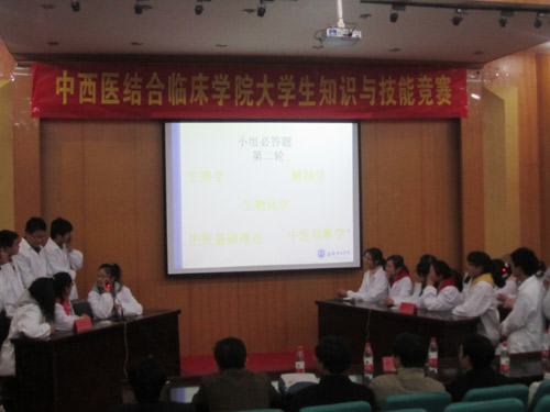 近日,中西医结合临床学院大学生知识技能竞赛复赛拉开帷幕。每场比赛该院党政领导都亲临现场观看比赛,各教研室专家老师应邀担任评委,进行现场解答。