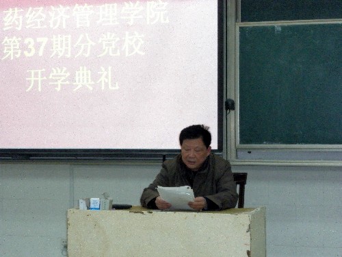 12月14日晚,医药经济管理学院举办了第37期分党校开学典礼。学校纪委书记兼党校校长刘新跃,学院党总支书记王伟、团总支负责老师及各班辅导员出席了典礼,王伟主持。