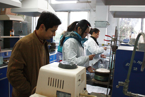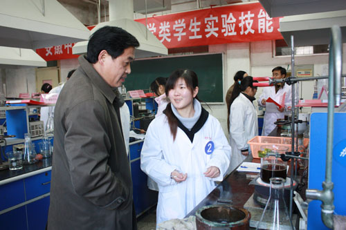 为进一步促进药学类学生实验教学改革,加强学生实验技能、科学思维、创新意识与能力的培养,提高实验教学质量,由学校教务处主办、药学院承办的首届药学类学生实验技能竞赛落下帷幕。12月17日,校教务处处长储全根,高教所所长韩茹,教学督导芮正祥、刘青云,教务处副处长尚莉丽,在药学院党总支书记方成武、副院长金传山的陪同下,检查指导实验技能考核的决赛现场。