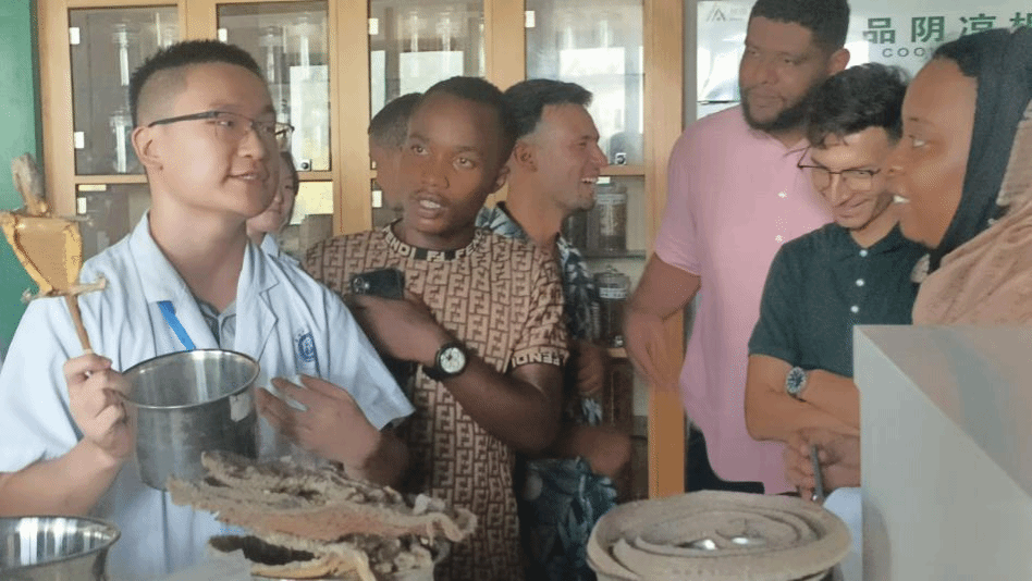 9月6日下午,留学生们来到中药资源中心参观,讲解员为留学生详细介绍了多种中药材的名称、功效及分布地域,带领他们观摩了药物炮制设备和珍奇标本,尤其讲解了部分中药的传统应用与现代药理研究。留学生们对这些神奇而独特的中药材表现出极大的兴趣,纷纷拍照记录,表示通过此次活动对中药文化有了更深入的了解,激发了他们进一步探索中医药知识的热情。