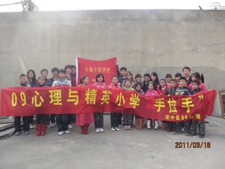3月是志愿者服务月,为响应校团委关怀农民工子女的号召,医药经济管理学院09、10心理的同学分别走进农民工子弟小学,开展了一系列别开生面的志愿服务活动。 3月16日,10心理班二十余位同学来到乐农小学北区,与那里的一群五年级校学生进行了一次精彩的联欢。姓名与编号游戏使同学们与小学生们开始熟识起来,有奖竞答的脑筋急转弯活动则把气氛推到了高潮。