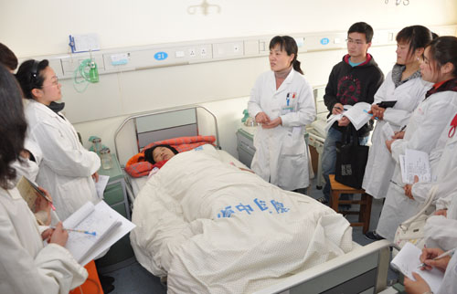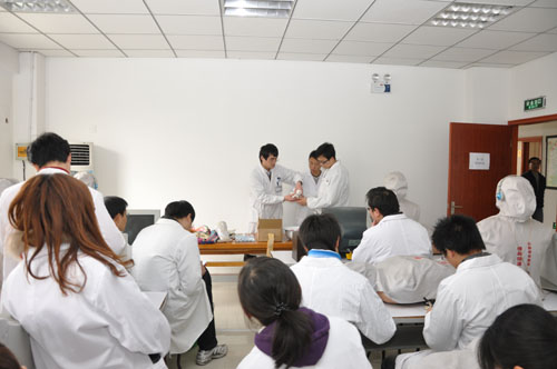 为了进一步深化教育教学改革,强化医学生实践能力培养,加强和推进教学建设,由学校教务处牵头,一附院具体实施的医学生第十学期“回归教学”活动于3月23日正式开展。360名即将毕业的医学生分成18个小组进入病房和技能实验室,分别接受中医临证能力和临床操作能力的强化培训。