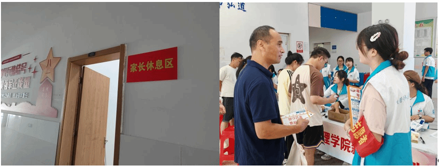 在迎新现场,学院还设置了党员先锋岗和家长休息区,为远道而来的家长提供周到的服务,也帮助家长们答疑解惑,让他们对孩子未来四年的生活有所了解和放心。