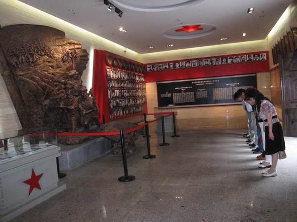 红军纪念堂里,全体党员为新中国而献身的革命先烈们默哀并三鞠躬。