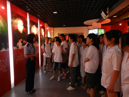活动中同学们参观了新建成的安徽省禁毒教育馆,通过专人介绍,同学们观看了各种毒品的实物展览,人体虚拟吸毒的全过程、以及毒品对人体健康、社会的危害性。在宣教大会拉歌互动环节中,同学们激情高昂地高唱红歌,赢得热烈掌声。