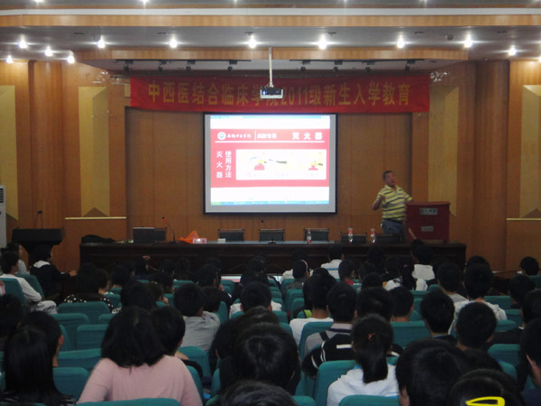 为增强新生安全意识,9月30日上午,中西医结合临床学院在图书馆学术报告厅举行校园安全教育讲座。本次讲座邀请了校保卫处副处长吴臣军、陈家胜老师为该院2011级新生讲解安全方面的知识。