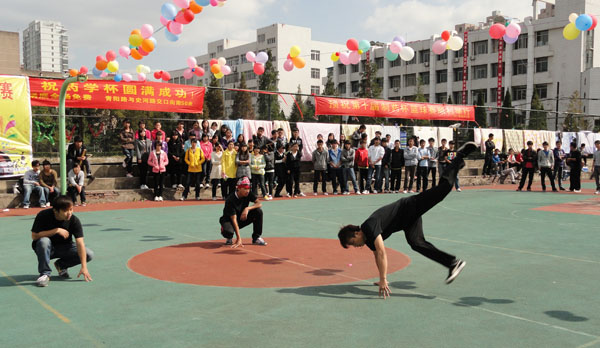 来自安徽农业大学的同学们,给现场的老师同学们带来了双节棍,街舞等精彩表演,使得开幕式的气氛达到高潮。随后,由袁跃老师开球,08药学、09药学带来激烈的男篮揭幕战。(孟凡举/文 王文昊/图)