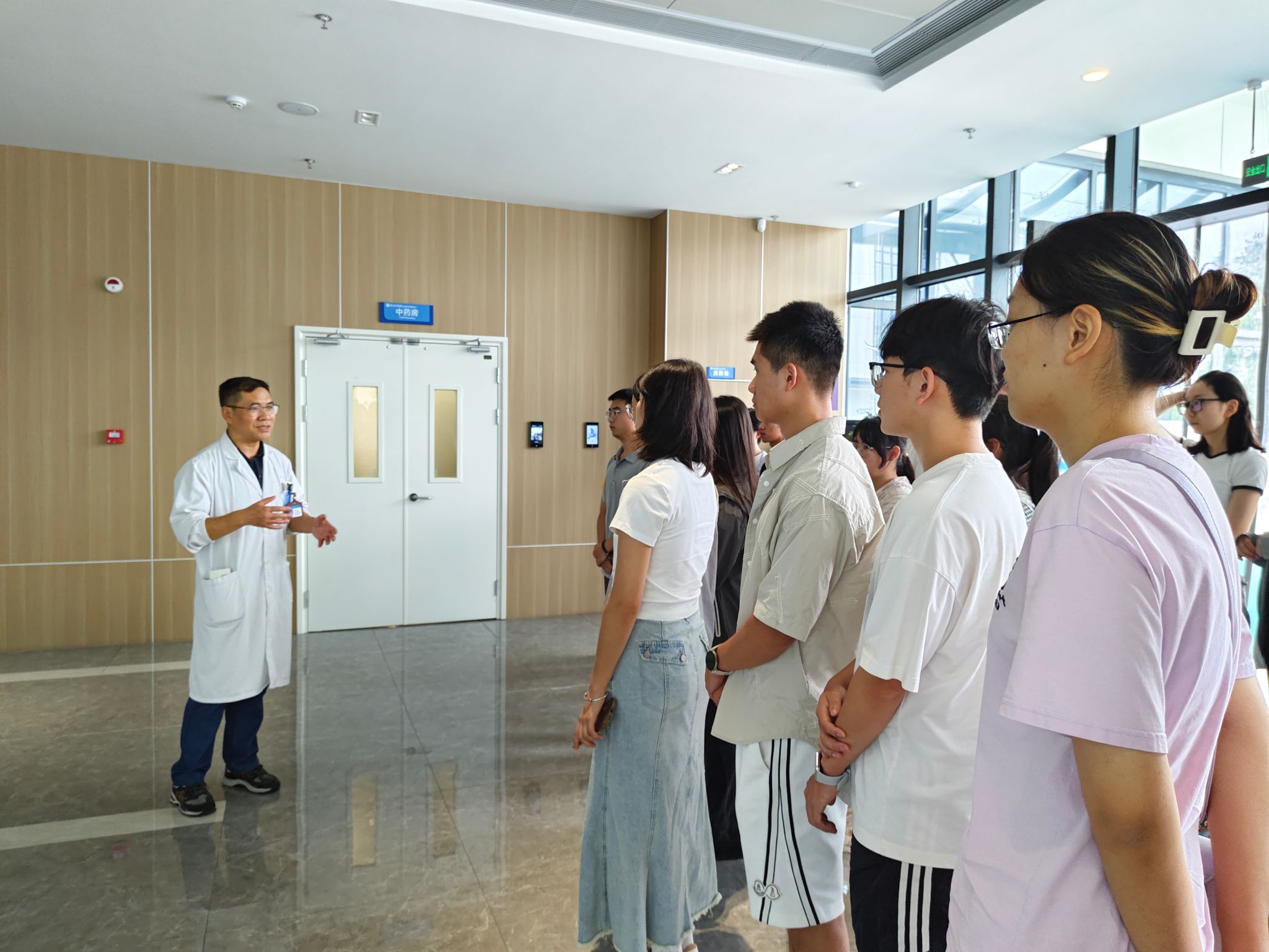 新安班同学们首站抵达黄山市中医医院,作为新安医学传承创新中心,进入院内扑面而来的是醇厚的中草药芳香,映入眼帘的是详尽的新安医家介绍。医院王旭东主任带领同学们重点参观了康复科室、针灸科室和新安名医堂,为新安学子分别讲述了现代器械在康复中的运用、电针科技在针灸治疗中的操作及新安医学流派现如今的传承发展情况。