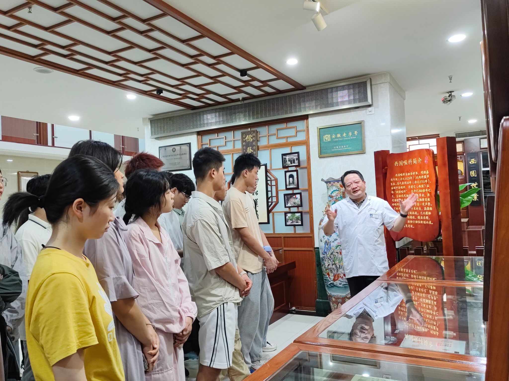 徽文化的精神内涵浸润着新安医学,新安医学的传承创新丰富了徽文化。学习徽文化是学习新安医学必不可缺的部分,在安徽中国徽文化博物馆和安徽徽州历史博物馆中,新安班同学们沉浸在浓厚的徽文化氛围,体验徽商“盐、典、茶、木”的商业特色,领悟其广博深邃的文化内涵,感受滋养新安医学的徽文化风韵。在陶行知纪念馆中,新安班同学们学习到陶行知先生为人师表的教育思想,更加感恩与敬爱兢兢业业的老师。
