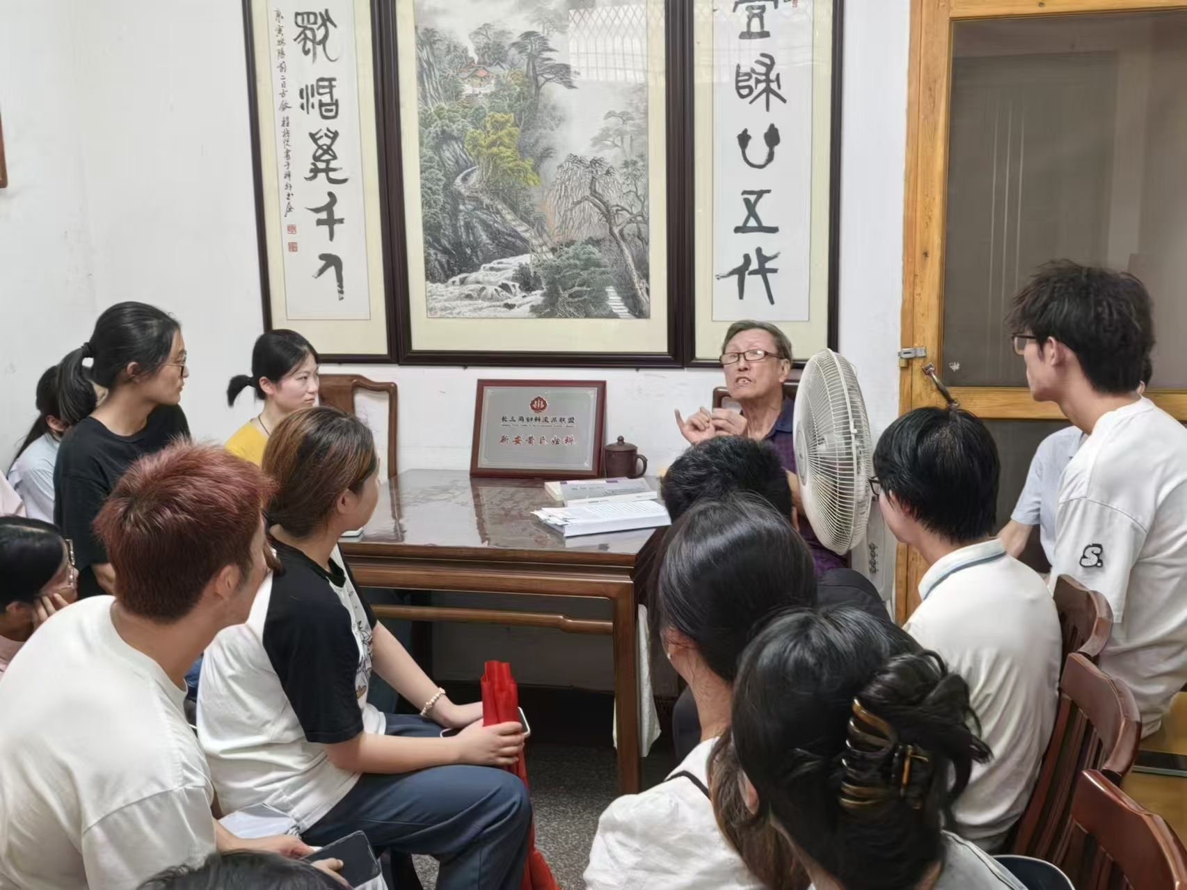 “以医济世,代代相传”,郑氏西园喉科带着这份初心不断传承,至今已有13代传人。郑园老先生向新安班同学们详细的介绍了郑氏西园喉科的发展史,以及治疗时所使用的药粉,拉进了同学们对郑氏喉科的距离,使同学们对其认知不再只停留在课本上对《重楼玉钥》治白喉的简单描述。“天下名医出新安”这句广为流传的新安佳话乃出自黄孝周老先生,此次新安学子前来拜访,“斯是陋室,惟黄老德馨”,黄老热情地将新安学子们引入屋内,介绍了黄氏妇科传承发展至今26代传人的历史,并强调了新安医学的十大特性。歙县黄氏妇科是新安医学家传承的典型代表,同时也是传承至今的医学世家中世传最久的一支,“医博世家,名闻遐尔”名副其实。“知常明变者赢,守正创新者进”程氏内科第八代传人程剑锋先生以课堂的方式向同学们传授程氏内科临证时“先辨病、后辩证、再论治”的独特模式,教诲同学们“持简驭繁,以一应万”的诊病策略,鼓舞同学们坚持初心、守正创新,肩负起新安医学传承的使命。