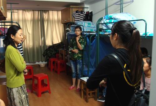 为确保新学期宿舍用电安全,慰问2012级新生,9月13日下午,经管学院党总支副书记周莉老师带领全体辅导员深入西区学生宿舍,开展安全检查及新生慰问工作。