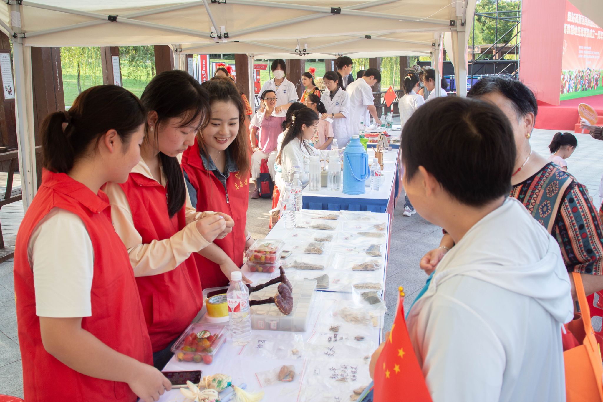 在中药展示区,大学生华佗药学社学生准备了多种中药材,通过讲解每种药材的性味归经、功效主治等知识,让居民们对中医药有了更加直观和深入的了解。