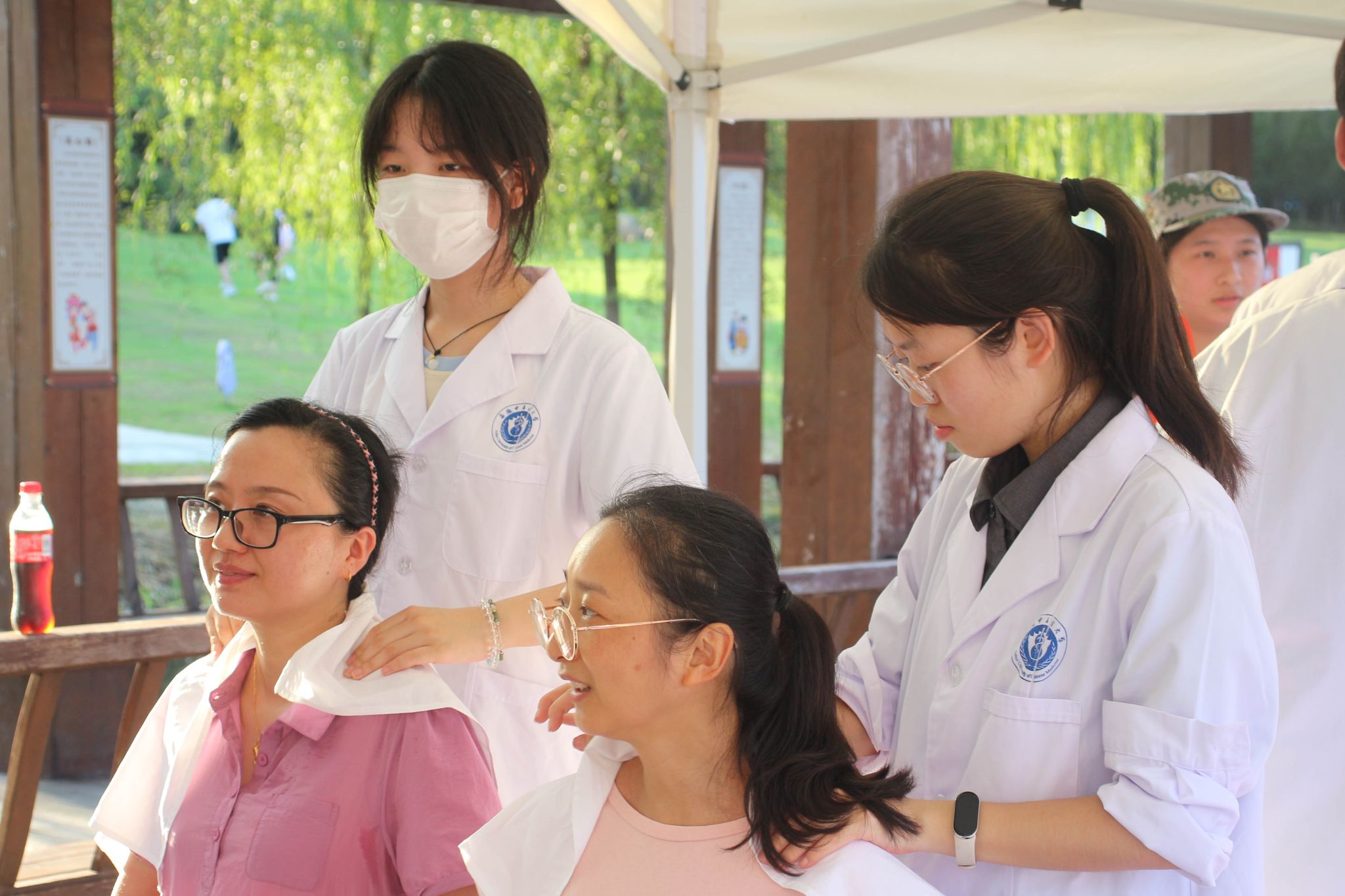 在推拿体验区,大学生新安医学学社学生耐心解答居民健康所遇问题、宣讲日常保健知识,运用中医推拿技法,为市民朋友提供免费的推拿服务,在缓解身体疲劳的同时感受中医养生的独特魅力。