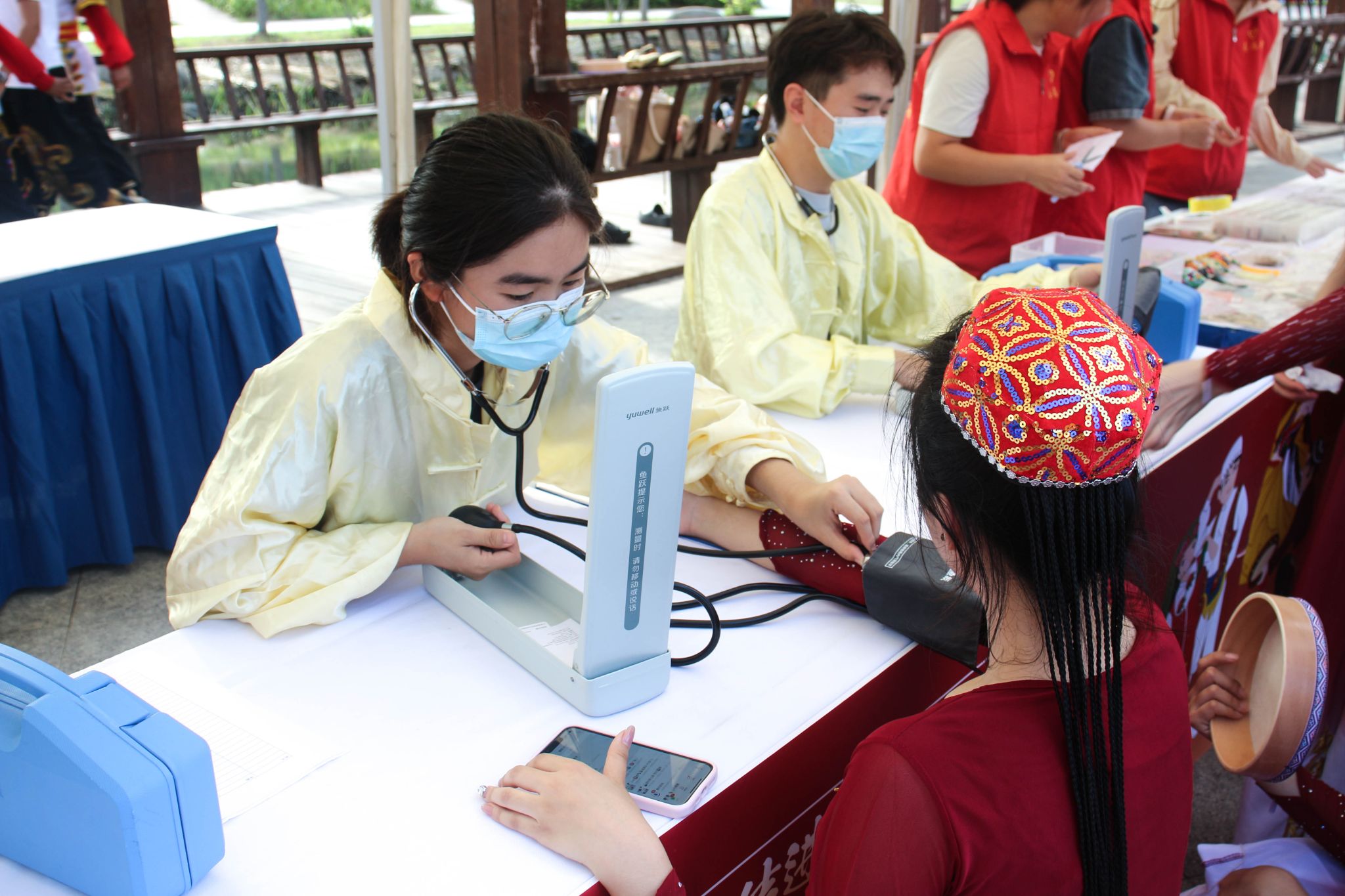 为弘扬中华民族传统文化,进一步铸牢中华民族共同体意识,新站高新区于9月20日举办“团结进步路 同心筑梦行”新站高新区民族团结进步宣传月暨高教基地统战联盟成立一周年庆祝活动。我校学生社团为广大市民提供中医推拿、测量血压、茶艺展示以及中药辨识和猜谜等中医文化体验服务。