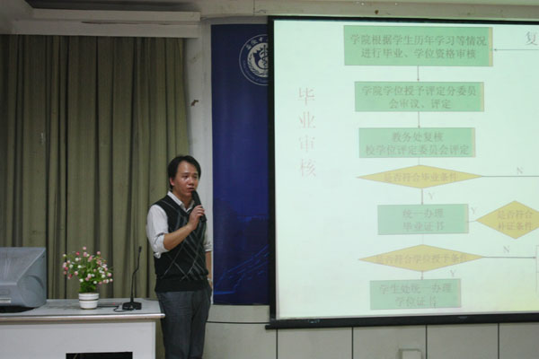 10月31日晚,药学院在多功能厅举办了新生入学教育系列活动之――考风考纪管理制度。活动邀请了教务处考务科科长李国强老师为全体新生进行了专题讲座。