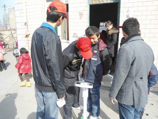 同学们一进校园就受到陈校长和老师们的热情接待,体检活动紧张而有序的开展起来,孩子们排好队测量身高、体重和视力,还有志愿者一边粘贴为孩子们精心准备的海报一边解说着各校的名人轶事,孩子们歪着脑袋认真倾听着。义演活动更是热闹非凡,歌曲、舞蹈串烧,相声,快板等,再加上孩子们的儿歌舞蹈,校园内一片欢声笑语。