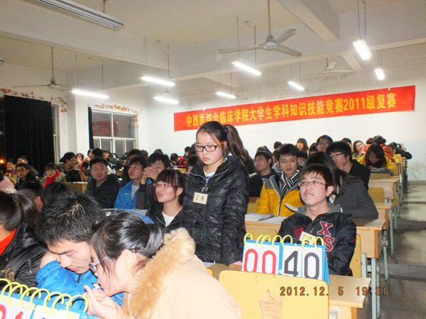 竞赛以年级为单位,该院2009、2010和2011三个年级共72名选手参加了复赛。此次题型多样、形式新颖,每场比赛设置必答、抢答、技能和风险四种题型,同时,穿插场外互动环节,现场气氛十分活跃。比赛中,选手们准备充分、应答自如。每场比赛均由学校老师和附院专家应邀担任评委,进行现场点评。该院领导和老师全程现场指导。