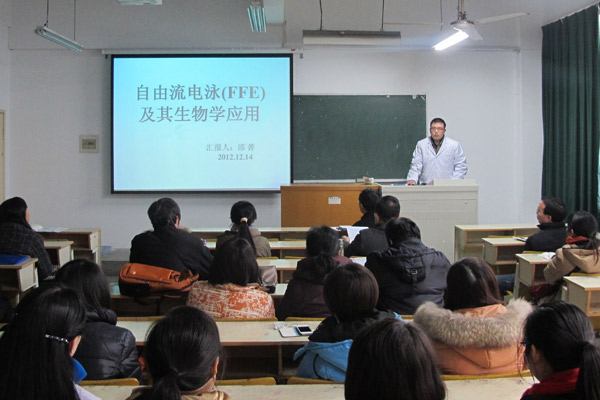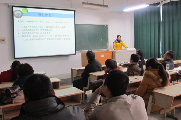 南京医科大学毕业的甘贤兵博士、上海交通大学毕业的邵菁博士、复旦大学毕业的马克龙博士、安徽医科大学毕业的李静博士分别作了《压力感受器和迷走神经传入活动对慢性心力衰竭大鼠心交感传入反射的影响》、《自由流电泳进样技术及其应用的研究》、《miRNA的研究策略及其在中医药学作用机制中的研究进展》、《RIP2基因单核苷酸多态性及血清水平与系统性红斑狼疮的相关性研究》的学术报告。