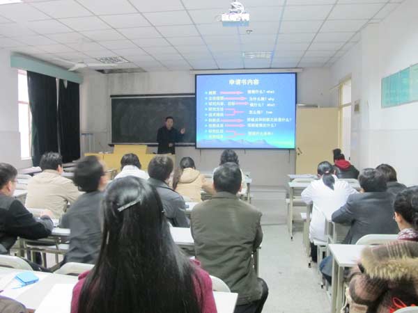 讲座由陈光亮教授主讲,内容为“自然科学基金的申报及注意事项”。陈光亮以他多年撰写标书和评审国家级、省级科研项目的切身经历和师生们分享了撰写科研标书的经验及重点注意事项。陈光亮从申请书的摘要、立论依据、研究目标和内容、研究方法、创新点等方面谈了如何写出一份质量高的科研标书。